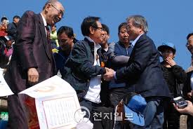 천지일보에 난 2012년 대통령 선거당시 이북도민 체육대회에서 당시 문재인 대통령 후보와 이만희 신천지 교주가 악수를 하고 있다고 주장을 했었죠.