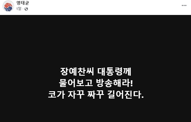 "장예찬씨, 대통령에게 물어보고 방송해라"